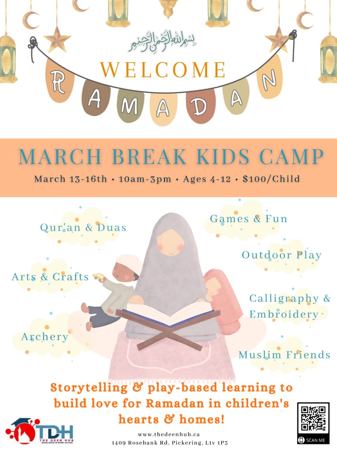 Welcome the blessed month of Ramadan into our children’s hearts and homes by instilling the love for Allah Subhana wa Ta’aala, Prophet Muhammad SAW, and the beautiful faith of Islam through a series of storytelling and play based activities in our March Break Camp!