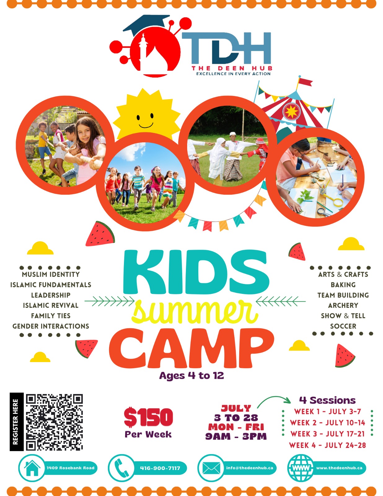 Welcome to The Deen Hub’s Summer Camp, where faith and summer adventure come together for an amazing and unforgettable experience. Our Islamic Summer Camp offers interactive Islamic education, fun activities like sports, arts, and team-building, character development, outdoor adventures, prayer and spiritual reflection, and a dedicated staff. Join us for a summer filled with faith, friendship, and fun! Visit our website for more details